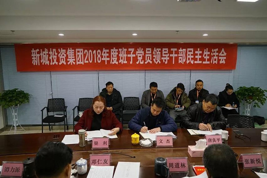 1月30日上午,新城投資集團(tuán)2018年度黨員領(lǐng)導(dǎo)干部民主生活會(huì)在新城商務(wù)酒店辦公樓1513會(huì)議室召開。這次民主生活會(huì),以“強(qiáng)化創(chuàng)新理論武裝,樹牢‘四個(gè)意識(shí)’,堅(jiān)定‘四個(gè)自信’,勇于擔(dān)當(dāng)作為,以求真務(wù)實(shí)作風(fēng)堅(jiān)決把黨中央決策部署落到實(shí)處”為主題。