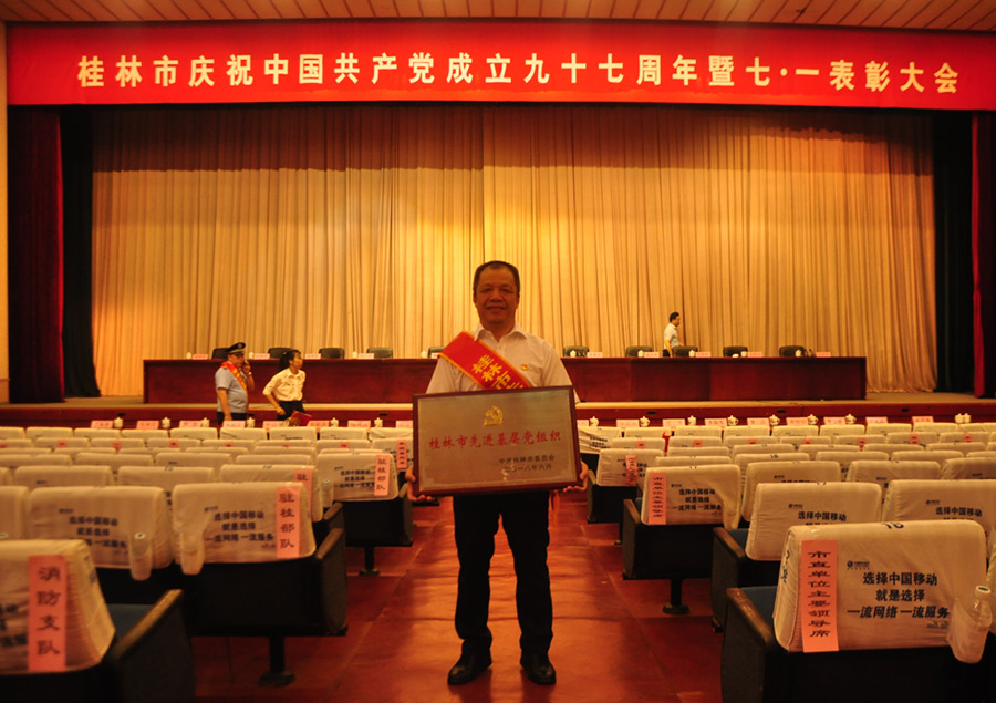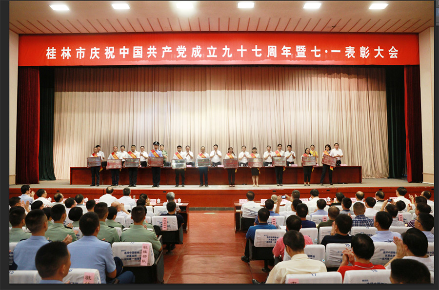 2018年6月29日上午,在桂林市直機(jī)關(guān)小禮堂舉行的桂林市慶祝中國(guó)共產(chǎn)黨成立九十七周年暨七·一表彰大會(huì)上,表?yè)P(yáng)了全市先進(jìn)基層黨組織、優(yōu)秀共產(chǎn)黨員、優(yōu)秀黨務(wù)工作者,新城投資集團(tuán)黨支部榮獲“桂林市先進(jìn)基層黨組織”稱號(hào),黨支部書記周道林代表新城投資集團(tuán)黨支部參加了此次表彰大會(huì)。