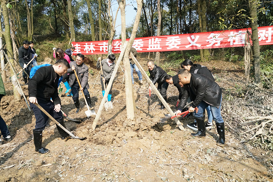 陽(yáng)春三月,萬物復(fù)蘇,為積極響應(yīng)國(guó)家大力開展植樹造林的號(hào)召,推進(jìn)生態(tài)文明建設(shè),倡導(dǎo)健康文明、綠色環(huán)保的生活理念,3月12日上午,新城投資集團(tuán)帶領(lǐng)市建筑設(shè)計(jì)院、嘉華監(jiān)理公司、中建八局桂林公司參加了由市紀(jì)委組織的基地項(xiàng)目義務(wù)植樹活動(dòng)。據(jù)組織方介紹,市紀(jì)委、市巡查辦、市派駐紀(jì)檢組、臨桂區(qū)紀(jì)委、林業(yè)局、園林局等多家單位,計(jì)180余人參加了此次植樹活動(dòng)。