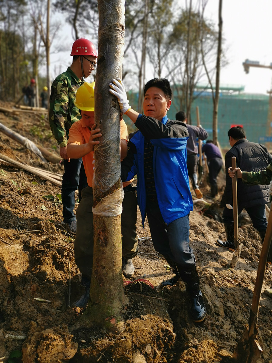 基地項(xiàng)目植樹現(xiàn)場(chǎng),志愿者們熱情高漲、干勁十足,有的挖坑,有的埋土,有的澆水,有的給樹苗刷石灰,還有技術(shù)人員現(xiàn)場(chǎng)教如何給樹苗修枝、施肥等管護(hù)知識(shí),大家你追我趕,比干勁、比進(jìn)度,各個(gè)環(huán)節(jié)銜接有序,個(gè)個(gè)忙得滿頭大汗,到處都是忙碌的身影和勞動(dòng)的歡聲笑語(yǔ),現(xiàn)場(chǎng)一派熱火朝天的勞動(dòng)景象。經(jīng)過一個(gè)上午的勞動(dòng),志愿者們共種植馬褂木20顆,秋楓135棵,小楠木200棵,植樹面積約4畝半,為基地項(xiàng)目增添了一道亮麗的風(fēng)景線。