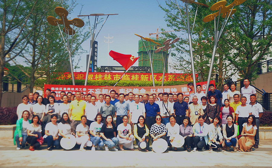 為深入學(xué)習(xí)貫徹黨的十九大精神,進(jìn)一步激發(fā)黨員發(fā)揮先鋒模范帶頭作用,2018年5月17日下午,臨桂區(qū)直屬機(jī)關(guān)工委、臨桂新區(qū)管委黨總支和新城投資集團(tuán)黨支部三級聯(lián)動,共同組織開展“不忘初心,牢記使命,紅船精神,建設(shè)新區(qū)”的主題黨日活動。臨桂新區(qū)工委副書記唐標(biāo)明同志、臨桂新區(qū)工委委員覃正東同志、臨桂新區(qū)工委委員莫秋元同志、新城投資集團(tuán)黨支部書記周道林同志都以普通黨員的身份參加今天的黨日主題活動。
