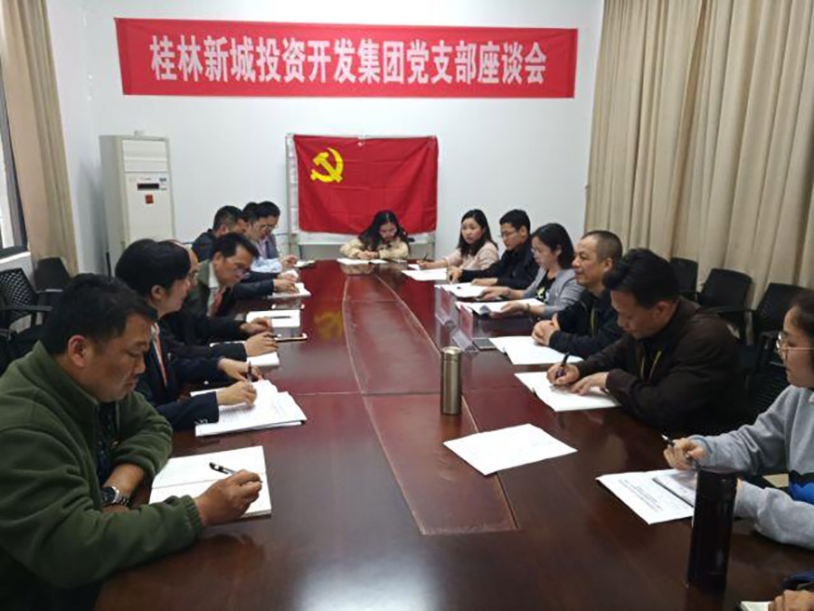 座談會上,與會人員圍繞“支部制度建設”、“讓黨員更好的發(fā)揮模范帶頭作用”、“黨員先鋒工程”、“集團公司廉政教育培訓”、“黨支部的配置在現(xiàn)階段存在的問題”、“如何將黨旗映勝地的品牌嵌入到一線陣地”、“如何讓黨建文化中心成為新區(qū)宣傳窗口”、“做一級示范點沖刺的各項準備工作”、“在臨桂水系游船上打造‘黨員先鋒號’”等內(nèi)容展開座談、發(fā)言積極踴躍。各位委員、黨小組長匯報和交流自己的思想和看法。唐良紅在聽取了與會代表的意見后,充分肯定了大家對黨建工作的思想認識和看法,同時,也提出了具體的指導意見。她說,以后這種座談會要常開,通過座談會可以更好的了解和發(fā)現(xiàn)基層黨組織在建設過程中遇到的各種問題,可以根據(jù)實際情況協(xié)商相關(guān)部門靈活解決。也希望在坐的黨員干部,不斷地加強學習,提升自身黨性修養(yǎng),堅定自己的理想信念,在基層黨建中更好的發(fā)揮黨員先鋒模范帶頭作用。