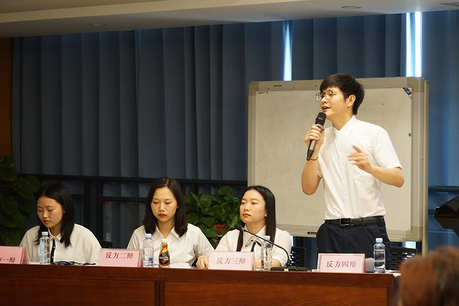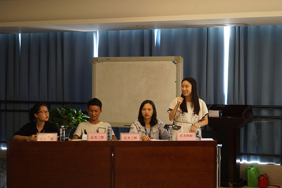 決賽:知難行易/知易行難。對(duì)陣雙方:正方(梁雯棋、陳艷梅、譚佳璐、周鑫)對(duì)陣反方(陳茜、曾曼、顧夢(mèng)潔、蔣磊)。