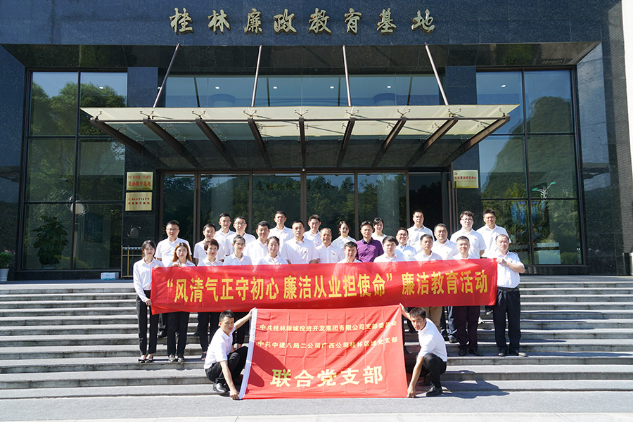 為進一步增強桂林市紀檢監(jiān)察綜合業(yè)務(wù)基地建設(shè)工作的光榮感、使命感和成就感,7月31日上午,市紀委、市監(jiān)委特別安排基地主要參建單位中共桂林新城投資開發(fā)集團有限公司支部委員會、中共中建八局二公司廣西公司桂林區(qū)域支部委員會聯(lián)合黨支部參觀了桂林廉政教育基地,開展了一項“風(fēng)清氣正守初心 廉潔從業(yè)擔(dān)使命”廉潔教育活動。