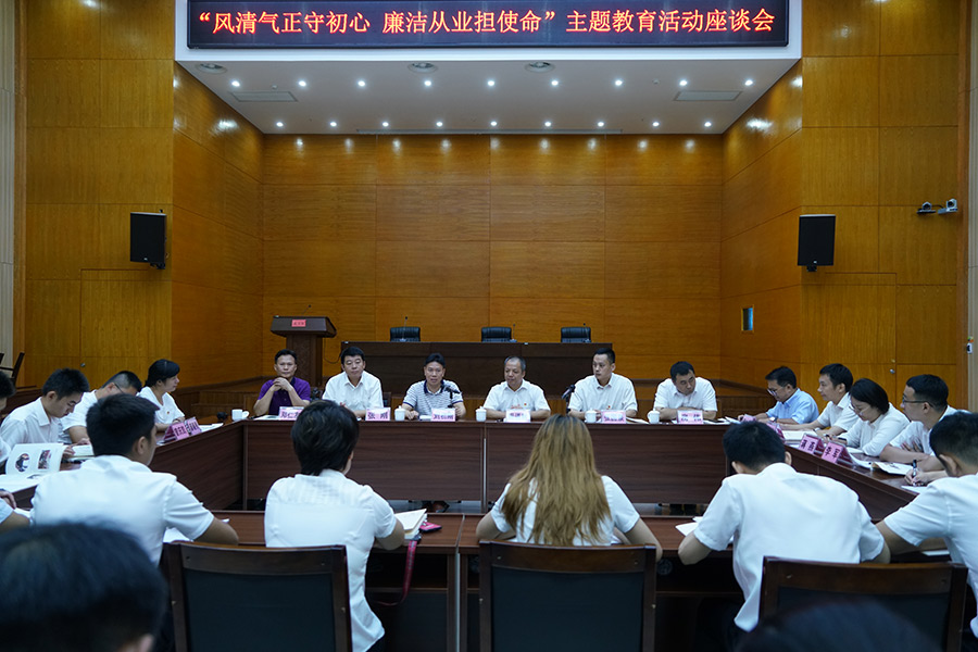 參觀結(jié)束后,全體黨員來到廉政報告廳進行了一場有深度有溫度的廉潔教育座談會,會議由新城投資集團黨支部委員、工會主席譚力源主持。新城投資集團黨支部書記、董事長、總經(jīng)理周道林在座談會上介紹了桂林市紀檢監(jiān)察綜合業(yè)務(wù)基地建設(shè)情況及集團公司黨風(fēng)廉政建設(shè)的基本做法。中建八局二公司廣西公司總經(jīng)理張國泉介紹了項目工程進度及后續(xù)工作安排,黨總支書記張剛介紹了中建八局鐵軍精神。