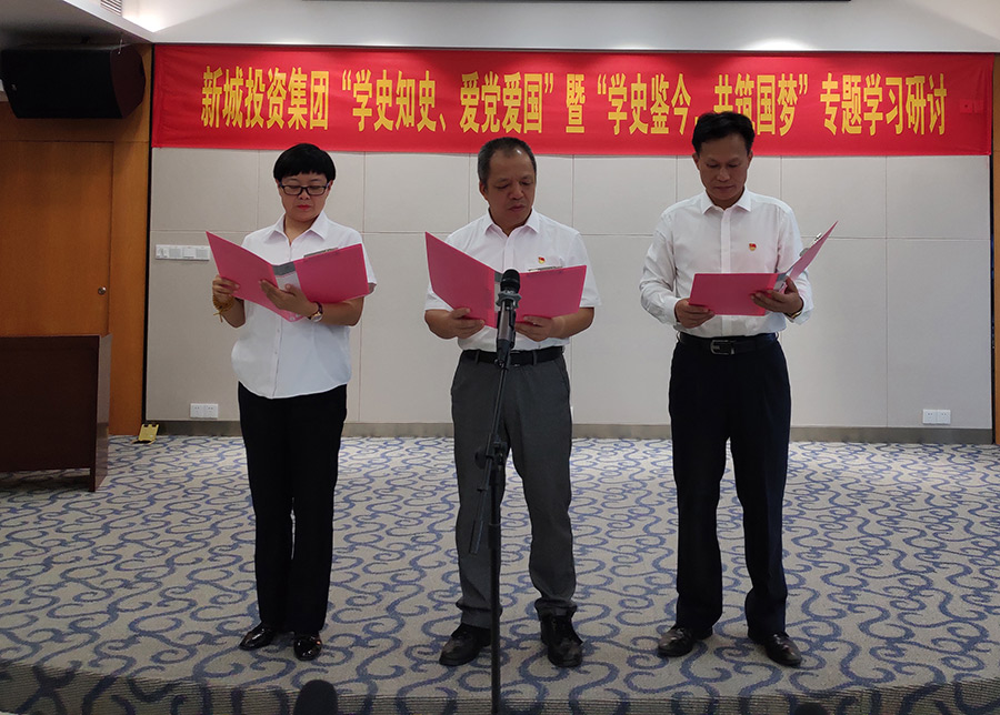 10月14日,新城投資集團黨總支籌備工作領(lǐng)導小組召開“學史知史、愛黨愛國”暨“學史鑒今,共筑國夢”專題學習會,認真學習貫徹習近平總書記關(guān)于學習黨史、新中國史的重要論述,在學習領(lǐng)悟黨史、新中國史中不斷深化對“不忘初心、牢記使命”的認識和理解,增強守初心、擔使命的思想自覺和行動自覺。會議由集團黨總支籌備工作領(lǐng)導小組副組長、副總經(jīng)理鄧仁友主持,集團黨總支籌備工作領(lǐng)導小組組長、主題教育領(lǐng)導小組組長、董事長周道林出席會議并作重點講話,集團黨總支籌備工作領(lǐng)導小組成員、副總經(jīng)理張新悅出席會議。
