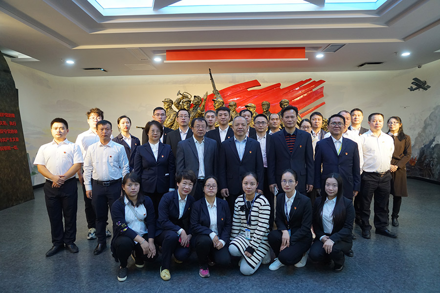 活動當天,大家參觀了位于新城投資集團辦公大樓一、二樓的桂林市黨群服務(wù)中心。講解員為黨員們一一講解了中心的定位、功能及各展區(qū)的內(nèi)容,黨員們認真聆聽講解員的講解,依次參觀了桂林市黨員志愿者服務(wù)總站、黨群業(yè)務(wù)受理區(qū)和黨組織活動區(qū)等展廳。體驗了“健康小屋”“城市書吧”“i游桂林”“時光隧道”“微笑墻”“非遺文化屋”“紅色影院”“電子翻書”等功能設(shè)施。通過觀看3D幻影成像《湘江戰(zhàn)役》和微電影《廖俊波》,真切感受了先輩們踐行初心拋頭顱、灑熱血的壯舉及廖俊波同志對黨忠誠、無私奉獻的高尚品質(zhì)。在以湘江戰(zhàn)役為歷史背景而制作的雕塑前,全體黨員合唱《國際歌》《中華人民共和國國歌》,重溫入黨誓詞。