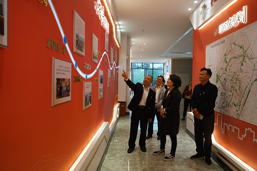 在一樓黨群展示區(qū),肖揚(yáng)燕駐足觀看了公司黨建宣傳片,強(qiáng)烈感受到新城投資集團(tuán)黨支部狠抓黨建、促融資建設(shè)、提員工精神面貌的實(shí)際成效。依次參觀了新城投資集團(tuán)企業(yè)簡(jiǎn)介、企業(yè)文化、集團(tuán)大事記、集團(tuán)組織架構(gòu)、黨務(wù)公開(kāi)欄、工會(huì)和共青團(tuán)介紹等版塊,不時(shí)與周書(shū)記探討與互動(dòng)。在十五樓,肖揚(yáng)燕被走廊兩邊的黨建氛圍營(yíng)造展示墻、辦公室門(mén)口的“黨員心語(yǔ)”以及黨員會(huì)議室濃濃的黨建氛圍所吸引,給予高度評(píng)價(jià)。她說(shuō),自己從事基層黨務(wù)工作多年,走訪了那么多單位,今天看到的新城投資集團(tuán)黨建展示區(qū)是做得最好的、最有亮點(diǎn)的,充分感受到新城投資集團(tuán)真正將抓黨建付諸于行動(dòng)和實(shí)踐。桂林市黨群服務(wù)中心選址在新城投資集團(tuán)辦公大樓一樓,整棟樓黨建氛圍濃、設(shè)計(jì)起點(diǎn)高、品位雅致、內(nèi)涵豐富,值得臨桂區(qū)直機(jī)關(guān)工委組織下屬單位黨組織過(guò)來(lái)觀摩學(xué)習(xí)。