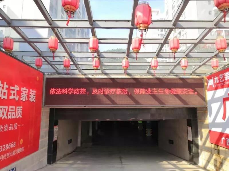 ▲新城國奧小區(qū)項(xiàng)目利用LED屏幕宣傳防疫信息。并對出入門把手、電梯按鍵、兒童娛樂設(shè)施等消毒。