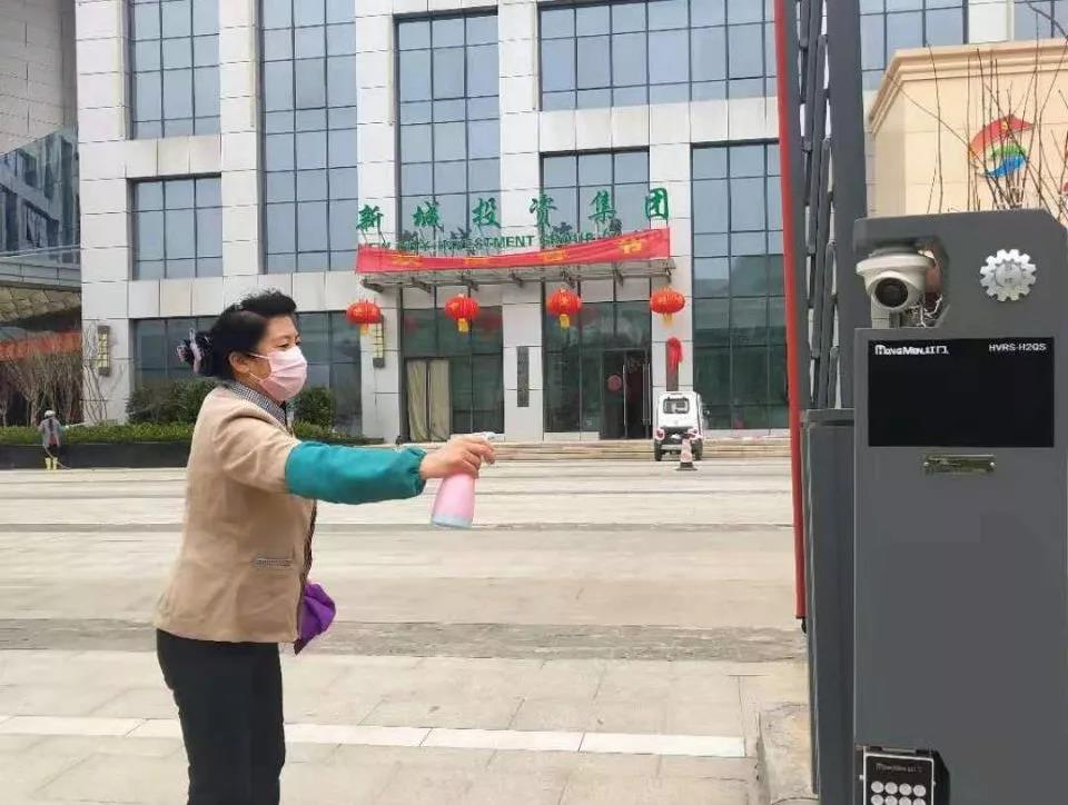 ▲秧塘工業(yè)園項(xiàng)目對大門、崗?fù)ぁ⒗暗葏^(qū)位進(jìn)行消毒。護(hù)衛(wèi)隊(duì)員也戴上了醫(yī)用口罩。