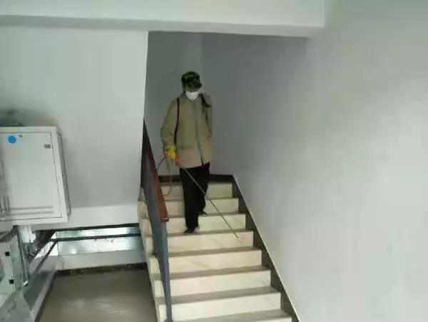 ▲桂醫(yī)·熙境項(xiàng)目對電梯、單元樓大廳、客服中心等地噴灑消毒水。