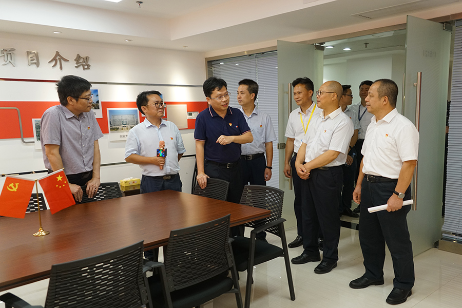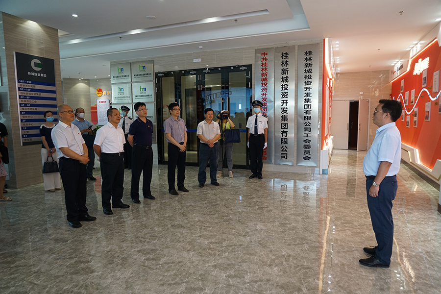 臨桂新區(qū)工委委員、管委會副主任文杰,市國資委黨委委員、組織部部長趙慶華,新區(qū)工委組織人事部部長梁利,集團黨總支委員陪同參觀。