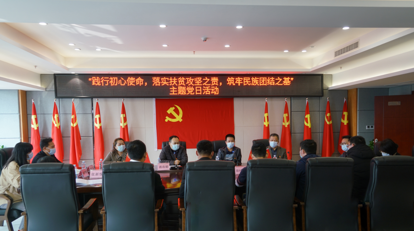 2月7日,桂林新城投資集團(tuán)黨總支組織開(kāi)展“踐行初心使命,落實(shí)扶貧攻堅(jiān)之責(zé),筑牢民族團(tuán)結(jié)之基”主題黨日活動(dòng)。臨桂新區(qū)工委委員、管委會(huì)副主任、機(jī)關(guān)黨委書(shū)記蔣玖明,臨桂新區(qū)工委委員、管委會(huì)副主任、機(jī)關(guān)黨委副書(shū)記文杰,臨桂新區(qū)工委組織人事部部長(zhǎng)梁利到場(chǎng)指導(dǎo)。黨總支書(shū)記、董事長(zhǎng)、總經(jīng)理周道林主持會(huì)議。集團(tuán)黨總支委員,第一、第二支部委員,駐村扶貧隊(duì)員唐忠祥、閆彩高、伍為群、李林峰參加活動(dòng)。