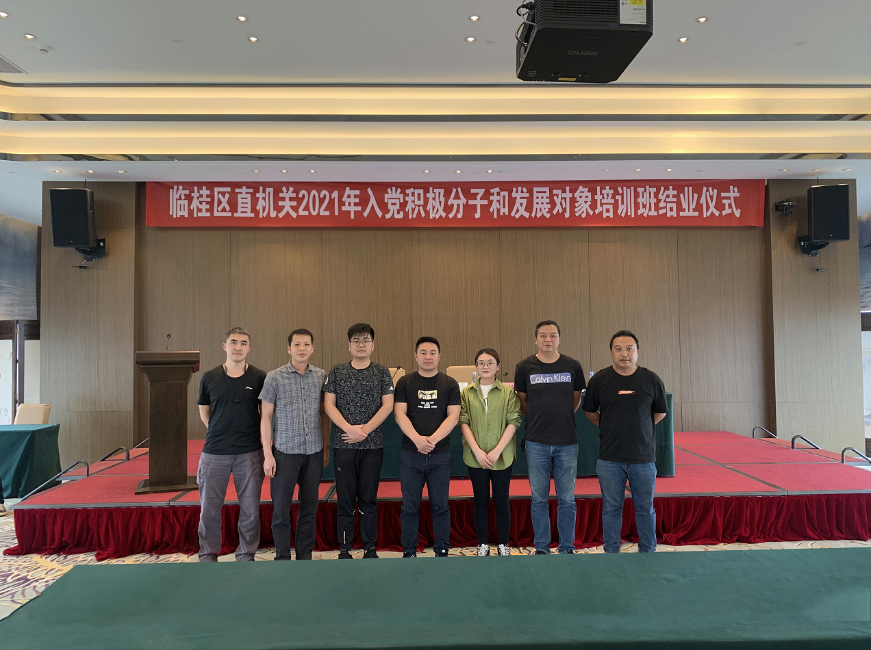 2021年5月24日--28日,臨桂區(qū)直機(jī)關(guān)第七期入黨積極分子及發(fā)展對(duì)象培訓(xùn)班在新城投資集團(tuán)下屬桂林宏謀大酒店十樓會(huì)議廳開班。新城投資集團(tuán)盤順民、廖靖宇、梁清淞、尹于、侯文元、張智濤、鄧玉歡等7名入黨積極分子參加培訓(xùn)班學(xué)習(xí)。