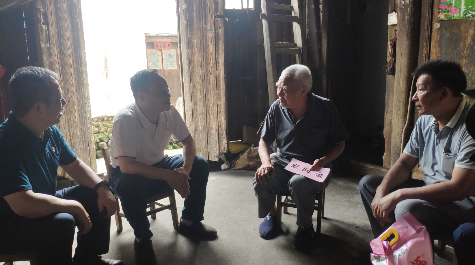 慰問組一行走訪慰問了兩位55年黨齡的困難老黨員林德貴和李天發(fā),并送上油米等慰問品。