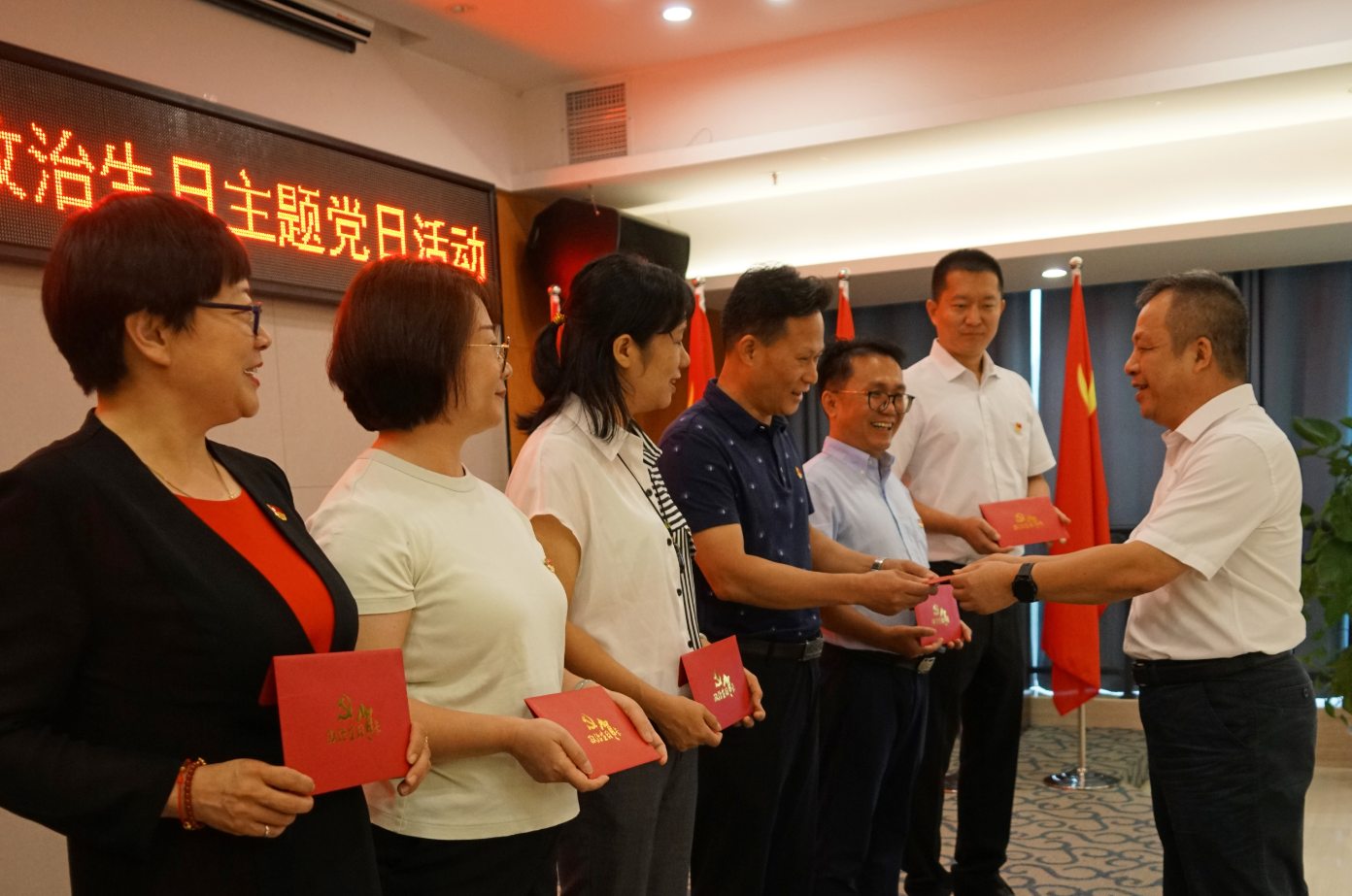 大會直播結(jié)束后,集團黨總支開展“獻禮建黨百年 政治生日憶初心”主題黨日活動,為所有的黨員慶祝政治生日。自治區(qū)優(yōu)秀黨務(wù)工作者、黨總支書記、董事長、總經(jīng)理周道林向黨總支委員和支部委員贈送政治生日卡,第一支部、第二支部書記向其他黨員贈送政治生日卡?!斑@是一份沉甸甸的政治生日禮物,是初心,更是責任”“我會時刻牢記共產(chǎn)黨員這一特殊身份”。黨員們在收到政治生日卡時,更多的感受到的是黨員的身份、黨員的榮譽、黨員的宗旨。