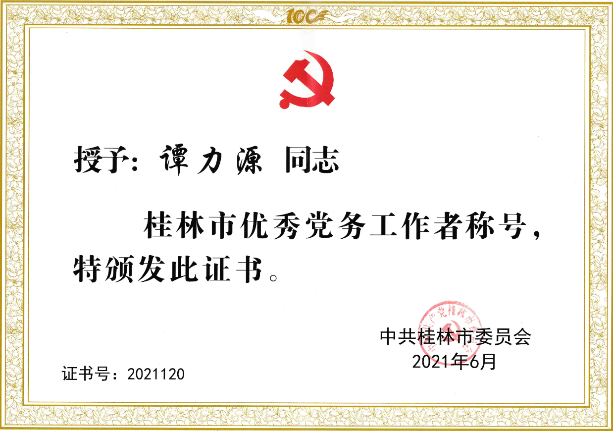 在慶祝中國(guó)共產(chǎn)黨成立100周年之際,為弘揚(yáng)正氣、樹立標(biāo)桿,激勵(lì)各級(jí)黨組織和廣大共產(chǎn)黨員堅(jiān)守初心、勇?lián)姑^發(fā)有為,市委決定對(duì)150名共產(chǎn)黨員、120名黨務(wù)工作者、150個(gè)先進(jìn)基層黨組織予以表彰,分別授予“桂林市優(yōu)秀共產(chǎn)黨員”、“桂林市優(yōu)秀黨務(wù)工作者”、“桂林市先進(jìn)基層黨組織”稱號(hào)。