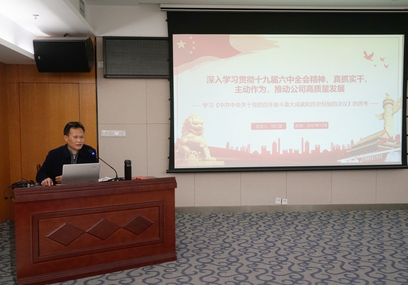 集團(tuán)黨總支副書(shū)記、副總經(jīng)理鄧仁友,黨總支組織委員、工會(huì)主席譚力源,黨總支統(tǒng)戰(zhàn)委員、副總經(jīng)理張新悅分別以《深入學(xué)習(xí)貫徹十九屆六中全會(huì)精神,真抓實(shí)干,主動(dòng)作為,推動(dòng)公司高質(zhì)量發(fā)展》《學(xué)習(xí)貫徹黨的十九屆六中全會(huì)精神——我們走在趕考的大路上》《十九屆六中全會(huì)公報(bào)》為主題,圍繞學(xué)習(xí)貫徹十九屆六中全會(huì)精神和全會(huì)通過(guò)的《中共中央關(guān)于黨的百年奮斗重大成就和歷史經(jīng)驗(yàn)的決議》,從深刻認(rèn)識(shí)黨的十九屆六中全會(huì)的重大意義,黨的百年奮斗歷史經(jīng)驗(yàn)和新時(shí)代中國(guó)特色社會(huì)主義的歷史性成就等方面進(jìn)行了深入解讀。