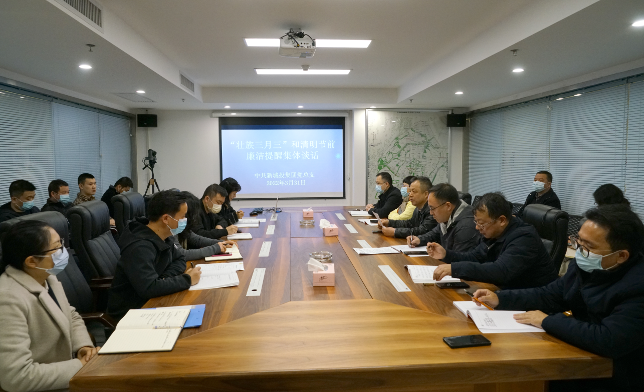 為深入貫徹落實中央、自治區(qū)持之以恒糾“四風”樹新風部署要求,嚴防“四風”問題反彈回潮,推動移風易俗, 2022年3月31日,新城投集團召開“壯族三月三”和清明節(jié)前廉潔提醒集體談話會。集團黨總支書記、董事長周道林主持會議,并就落實上級要求對集團領(lǐng)導班子成員、各部室子公司負責人進行廉政提醒。