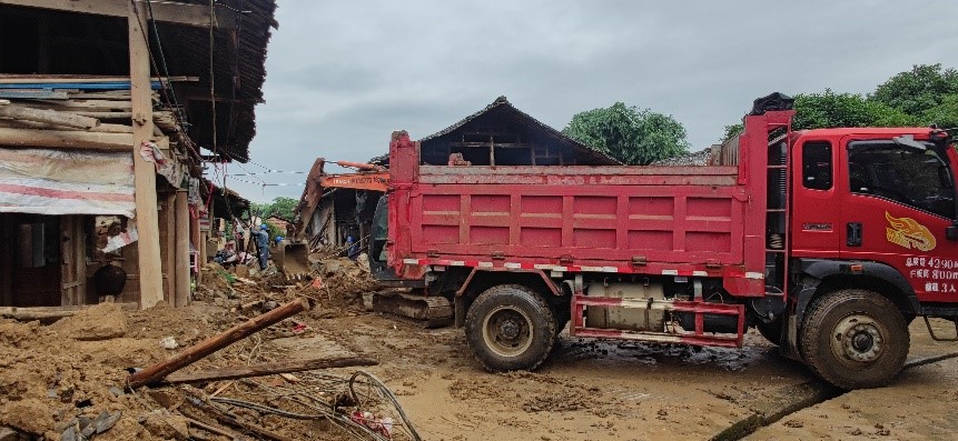 當(dāng)天下午,譚力源會(huì)同臨時(shí)聯(lián)合黨支部副書記王偉財(cái)帶領(lǐng)成員單位中建八局廣西公司桂林項(xiàng)目部技術(shù)人員到達(dá)羅江村委受災(zāi)的4個(gè)自然村,開展實(shí)地察看,初步形成了損毀、堵塞道路的清理方案。為更好的統(tǒng)籌推進(jìn)羅江村救災(zāi)工作,五通鎮(zhèn)黨委在羅江村委辦公地召集相關(guān)單位碰頭,并根據(jù)現(xiàn)場(chǎng)情況優(yōu)化調(diào)整推進(jìn)計(jì)劃。