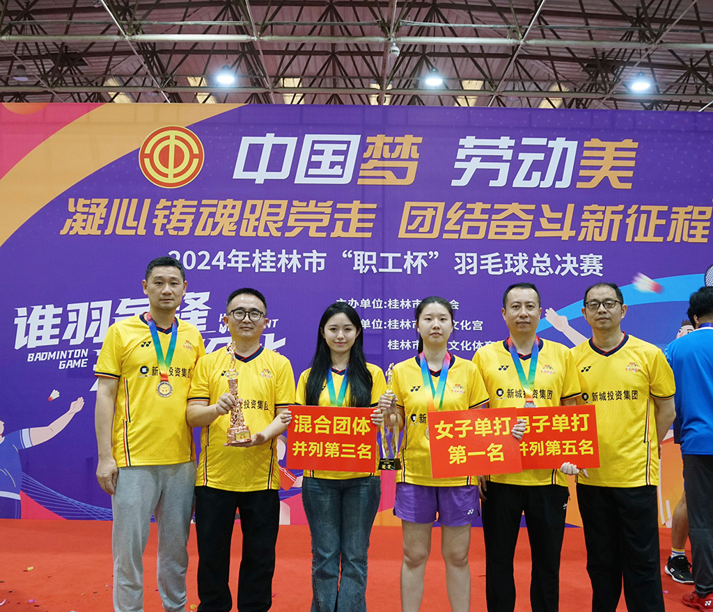 4月27日下午,由市總工會(huì)主辦的“中國(guó)夢(mèng) 勞動(dòng)美 凝心鑄魂跟黨走 團(tuán)結(jié)奮進(jìn)新征程”桂林市“職工杯”羽毛球比賽圓滿結(jié)束并舉行了頒獎(jiǎng)儀式。新城投集團(tuán)羽毛球隊(duì)經(jīng)過(guò)激烈角逐,在36支參賽隊(duì)伍中摘得多項(xiàng)榮譽(yù):由公司黨委副書記(主持工作)、副董事長(zhǎng)、總經(jīng)理朱毅擔(dān)任領(lǐng)隊(duì),吳萍明、龔志祥、楊衛(wèi)來(lái)、張欣婭、唐蒙組成的新城投集團(tuán)“黨旗映勝地”羽毛球隊(duì)榮獲團(tuán)體第三名;張欣婭榮獲女子單打第一名;楊衛(wèi)來(lái)榮獲男子單打第五名的優(yōu)異成績(jī)。