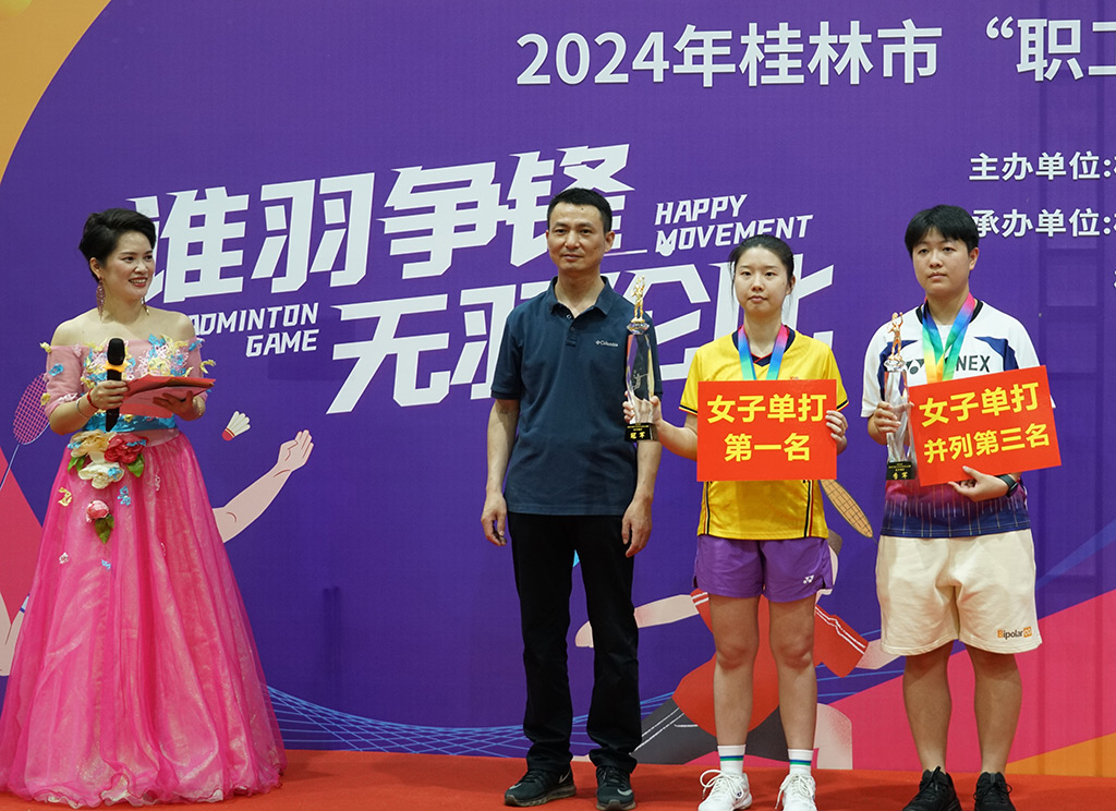 新科女單冠軍張欣婭,1999年6月出生于桂林,2021年7月入職桂林新城投資開發(fā)集團(tuán)有限公司下屬子公司桂林宏謀物業(yè)服務(wù)股份有限公司,10歲開始學(xué)習(xí)羽毛球,在良師益友肖教練的悉心教導(dǎo)下,水平不斷提高,曾在高中時(shí)期獲得桂林市女子單打第四名。進(jìn)入大學(xué)后,她擔(dān)任校羽毛球隊(duì)女隊(duì)隊(duì)長(zhǎng),代表學(xué)校參加過(guò)全國(guó)、省級(jí)、市級(jí)大型羽毛球比賽,取得全區(qū)第十二屆學(xué)生運(yùn)動(dòng)會(huì)羽毛球比賽普通本科女子單打組第五名,桂林市十大高校羽毛球比賽女子團(tuán)體第二名,第十屆“全區(qū)高校職工羽毛球”比賽優(yōu)秀裁判員等榮譽(yù)。入職宏謀物業(yè)公司以后,她仍堅(jiān)持利用業(yè)余時(shí)間練習(xí)羽毛球,既提高了身體的靈活性和協(xié)調(diào)性,增強(qiáng)了專注力、判斷力和反應(yīng)能力,又增進(jìn)了同事間的友誼和團(tuán)隊(duì)凝聚力,有利于更好地應(yīng)對(duì)挑戰(zhàn),以飽滿的熱情投入到各項(xiàng)工作中。