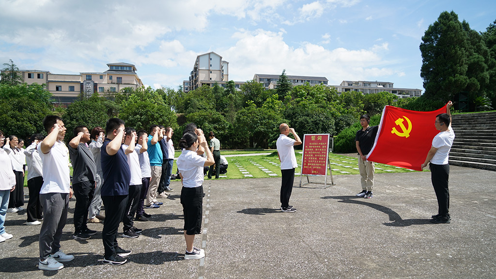 青山處處埋忠骨,何須馬革裹尸還。黨員們首先來到湘江戰(zhàn)役紀(jì)念碑前,向烈士紀(jì)念碑敬獻(xiàn)花籃并深深地三鞠躬,以表對革命烈士最崇高的敬意,黨員同志面向黨旗重溫入黨誓詞,追憶入黨初心。