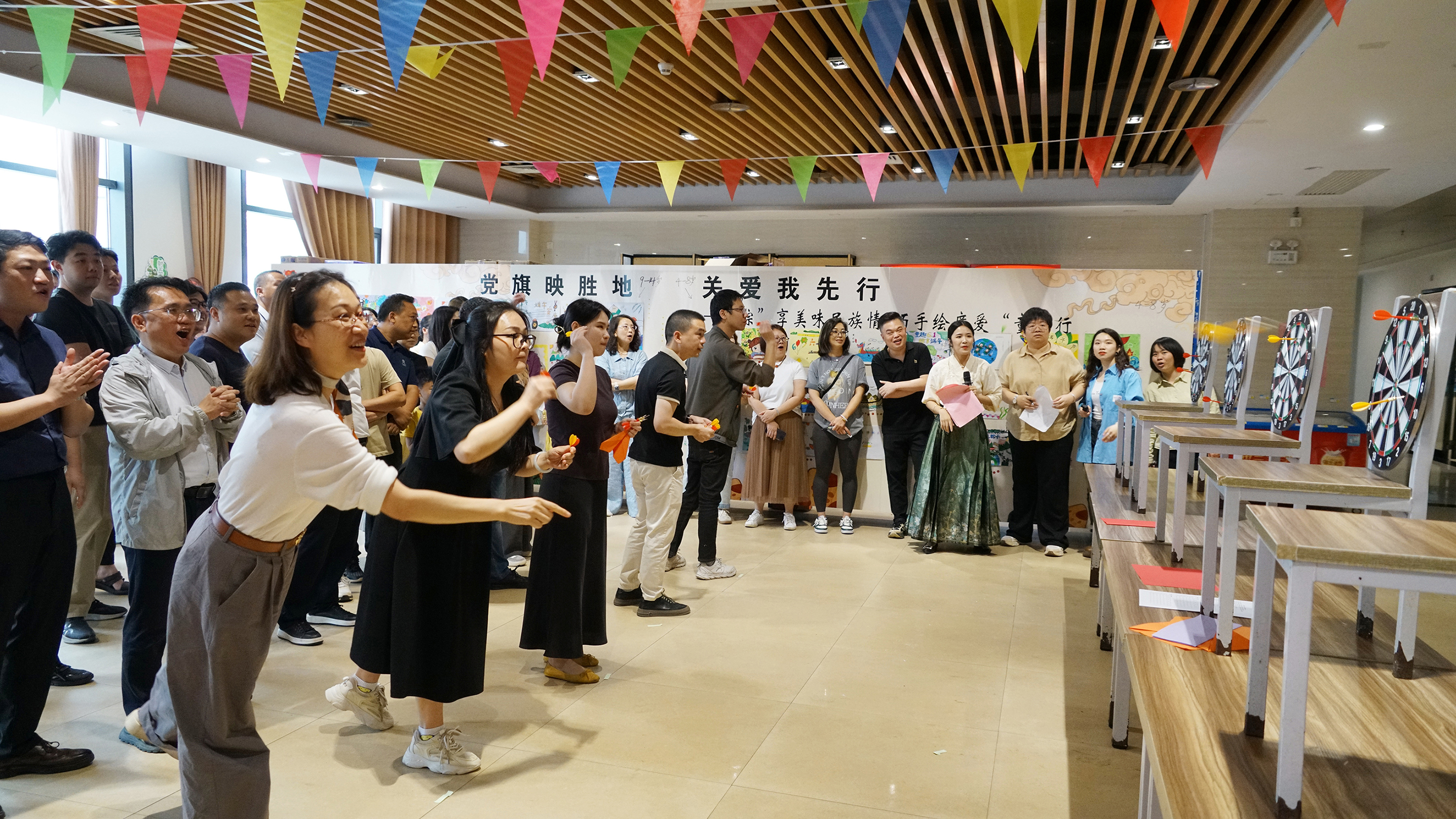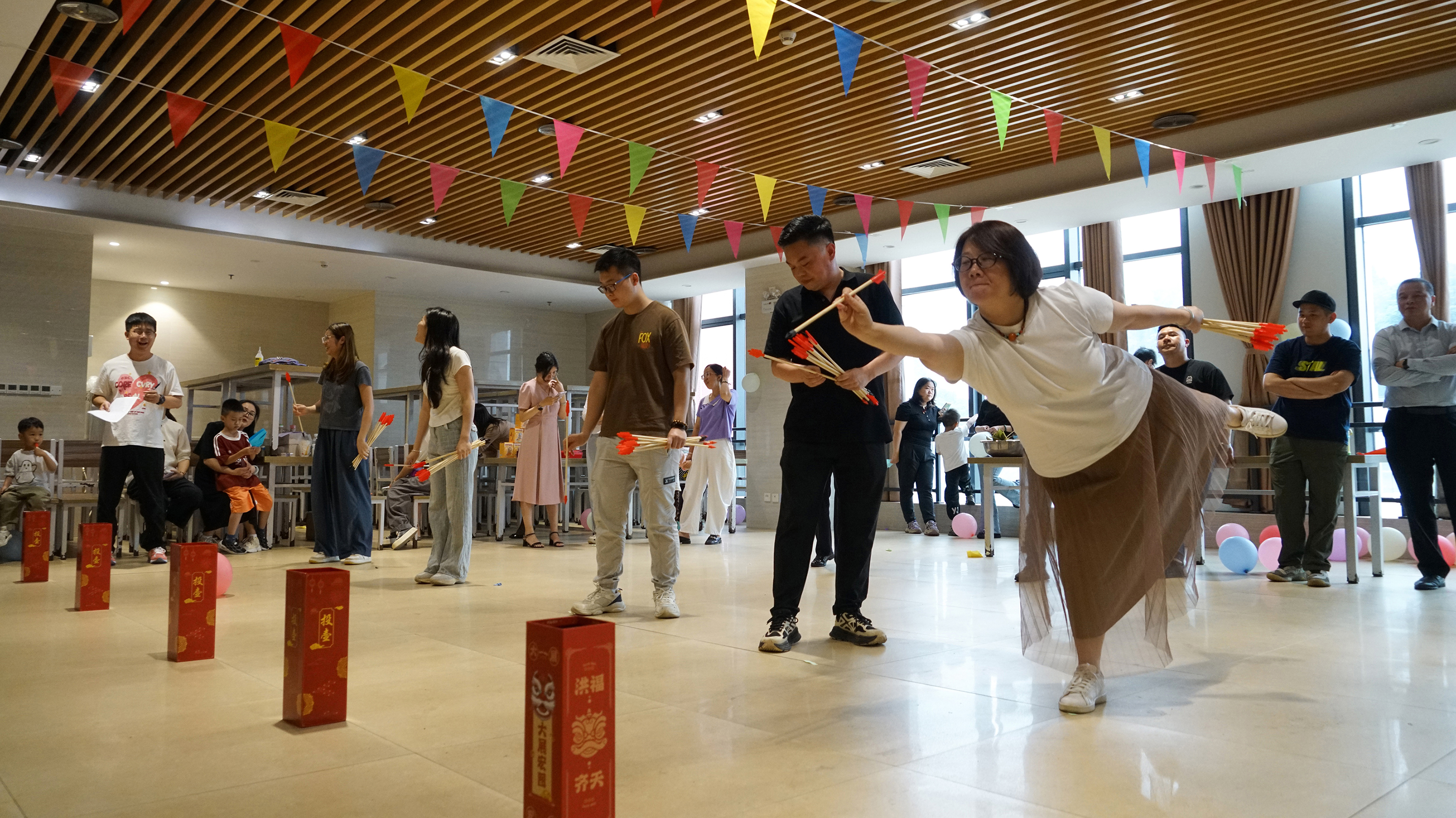 “家企同行·國風(fēng)非遺——民族文創(chuàng),與‘粽’不‘童’”趣味游戲挑戰(zhàn)環(huán)節(jié),將活動氛圍推向高潮。童年紙飛機(jī)、端午射五毒、趣味投壺三大趣味游戲讓職工與孩子都沉浸其中。在童年紙飛機(jī)游戲中,為了能讓紙飛機(jī)飛得更遠(yuǎn)、更久,大家興致勃勃地嘗試著各種折法,隨后用力一擲,紙飛機(jī)在空中劃出一道道優(yōu)美的弧線,有的飛得又高又遠(yuǎn),有的則在空中翻轉(zhuǎn)幾圈后穩(wěn)穩(wěn)落地,看著自己折的紙飛機(jī)歡呼雀躍,仿佛回到了無憂無慮的童年時光。端午射五毒游戲則充滿了傳統(tǒng)韻味,大家手持飛鏢,瞄準(zhǔn)靶心,每當(dāng)有人射中五毒圖案,周圍就會響起一陣歡呼聲,大家在歡聲笑語中感受著端午節(jié)的傳統(tǒng)習(xí)俗。趣味投壺游戲更是熱鬧非凡,參與者們瞄準(zhǔn)壺口,或站或蹲,調(diào)整著姿勢和力度,隨著一次次投中,現(xiàn)場的氣氛也一次次被點(diǎn)燃,歡呼聲、加油聲此起彼伏。歡聲笑語回蕩在整個活動現(xiàn)場。各組成員在比賽中相互配合、相互鼓勵,展現(xiàn)了團(tuán)隊合作的力量。最終,根據(jù)各組獲得的總分,評選出冠軍組,大家在歡樂中感受到了團(tuán)隊的溫暖與力量。