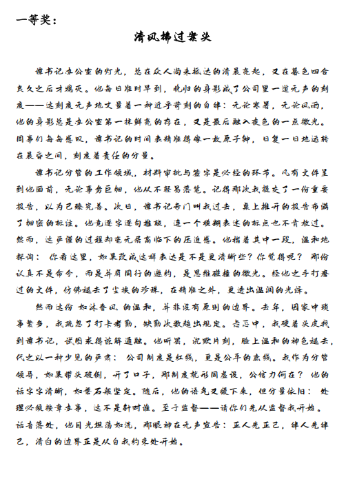 一等獎:黃深境《清風(fēng)拂過案頭》