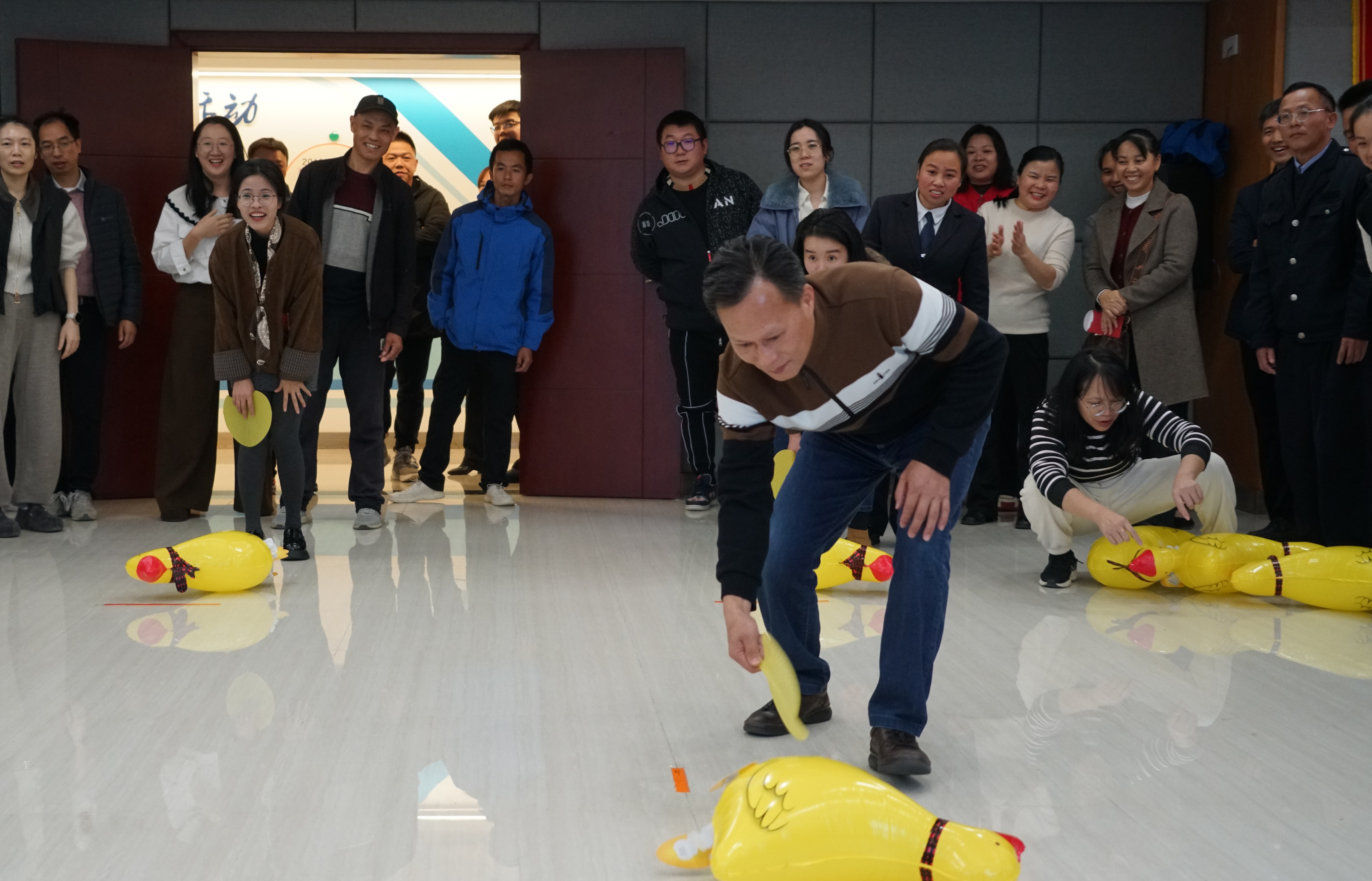“趕鴨子上架”游戲中,隊(duì)員們手持蒲扇,對(duì)著圓滾滾的氣球鴨子“各顯神通”,小鴨子們時(shí)而聽(tīng)話前行,時(shí)而突然“拐彎”。這場(chǎng)充滿不確定性的協(xié)作挑戰(zhàn),把緊張感和趣味性拉滿,歡樂(lè)值一路飆升!