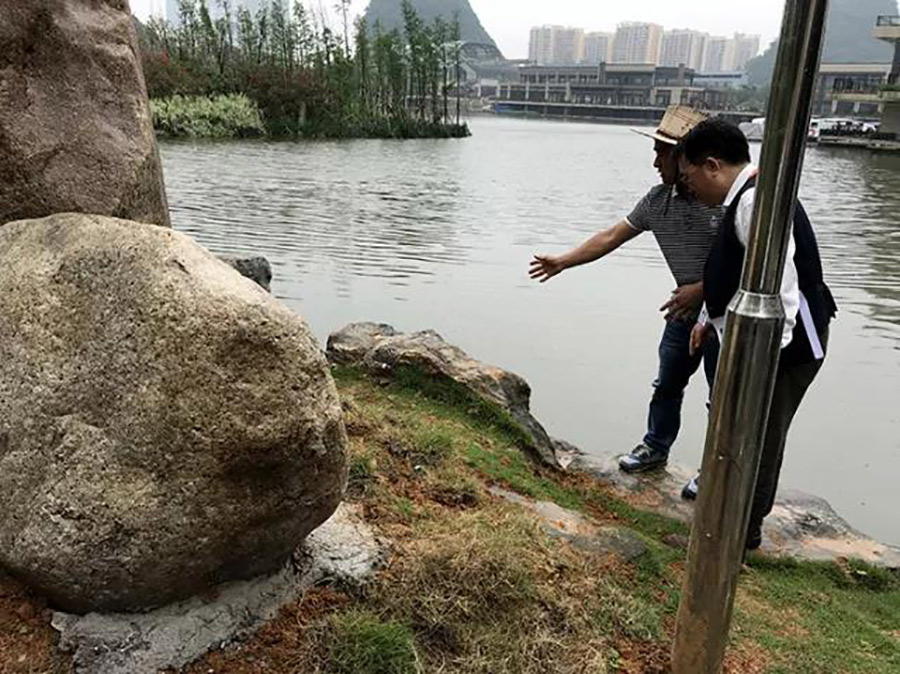 緊接著,檢查組冒雨檢查臨桂新區(qū)橋梁標(biāo)識(shí)石的牢固情況。在現(xiàn)場(chǎng)聽取施工人員的介紹后,檢查組提出進(jìn)入雨季后,降雨頻繁,要適時(shí)加強(qiáng)對(duì)橋梁標(biāo)識(shí)石的沉降觀察,以確?;A(chǔ)的安全、穩(wěn)固。