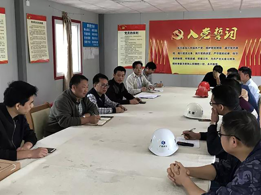 圖為譚力源組織項(xiàng)目管理人員和監(jiān)理、施工單位人員開展安全檢查