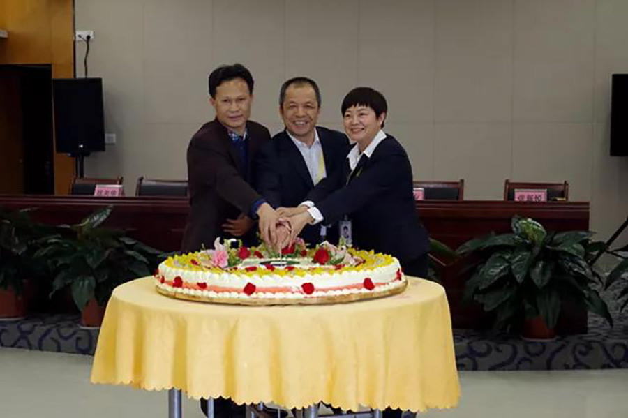 圖為集團公司部分班子領導切九周年生日蛋糕