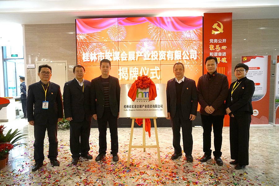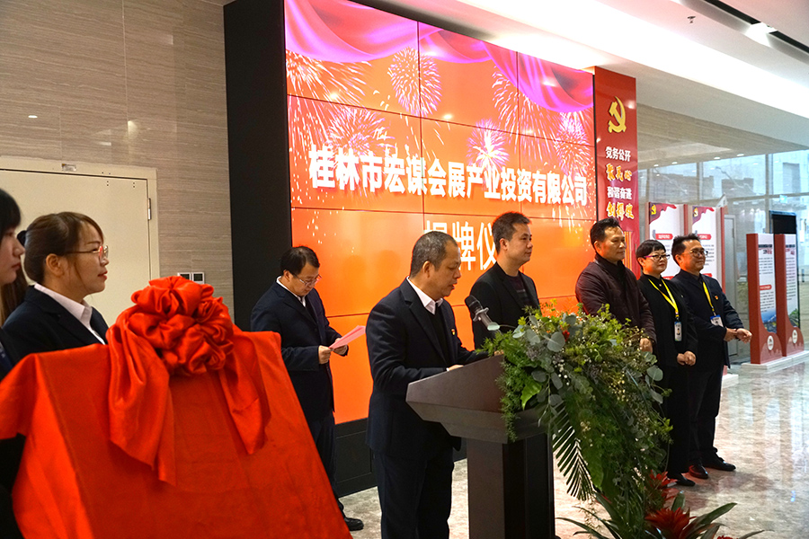 12月24日上午,在新城投資集團(tuán)一樓舉行了桂林市宏謀會(huì)展投資有限公司(以下簡稱宏謀會(huì)展公司)揭牌成立。臨桂新區(qū)工委委員、管委會(huì)副主任文杰,新城投資集團(tuán)黨支部書記、董事長周道林揭牌并致辭?;顒?dòng)由新城投資集團(tuán)副總經(jīng)理鄭善華主持,集團(tuán)主管以上干部職工參加。