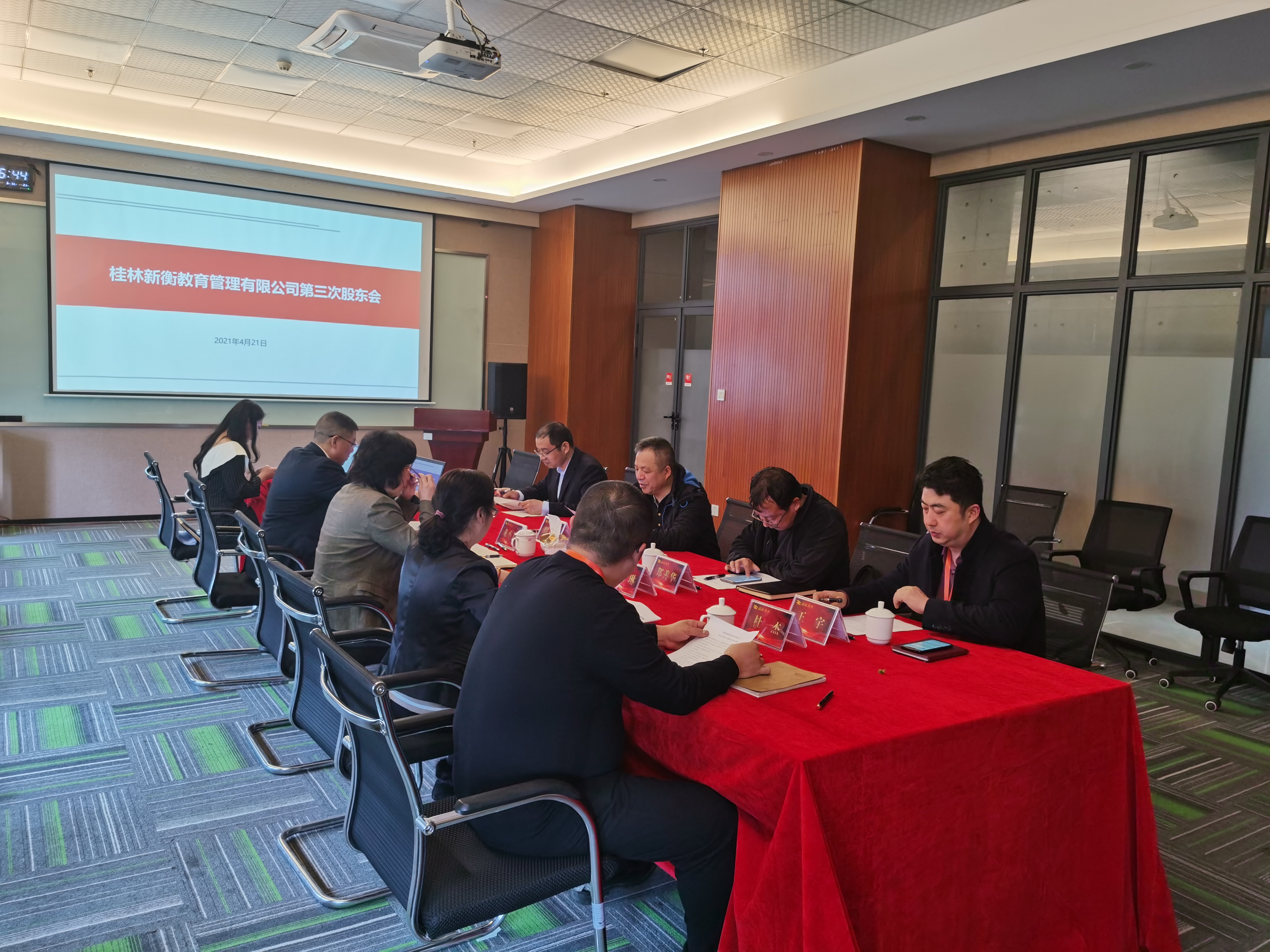 2021年4月21日下午,桂林新衡教育管理有限公司2021第二次股東會(huì)在公司三樓會(huì)議室召開,桂林新城投資開發(fā)集團(tuán)有限公司董事長(zhǎng)周道林、廣西新衡教育管理有限公司董事長(zhǎng)龍小芳分別代表桂林新衡教育管理有限公司雙方股東參會(huì)。
