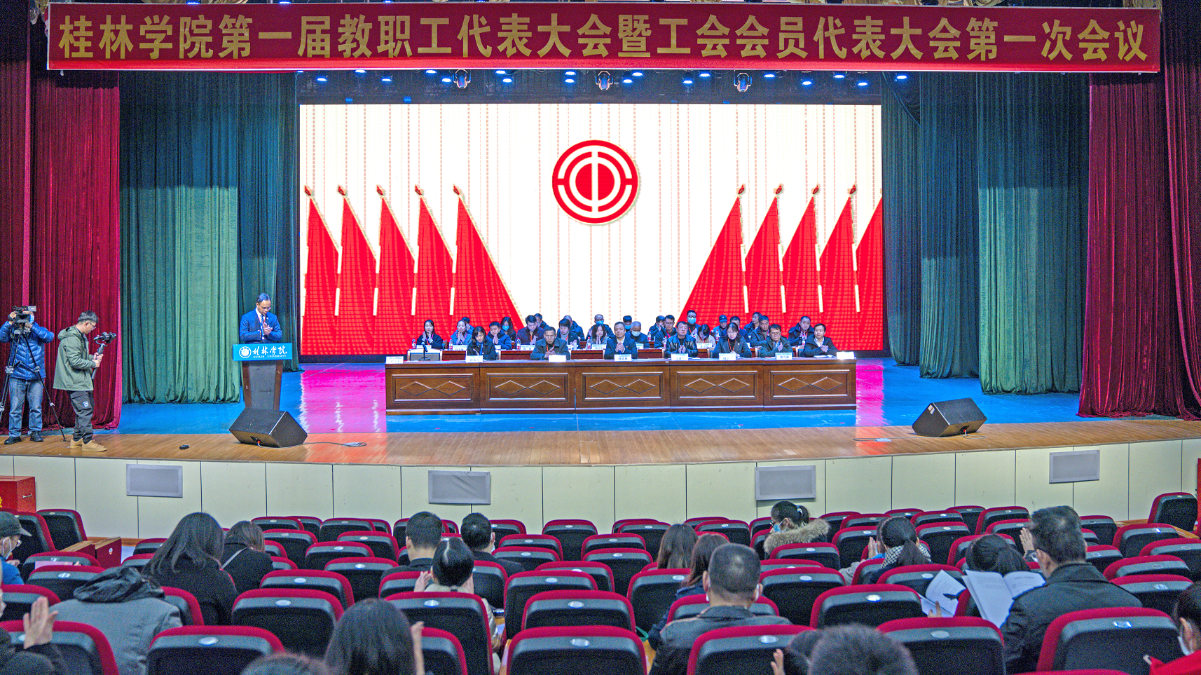 2022年1月15日上午,桂林學院第一屆教職工代表大會暨工會會員代表大會第一次會議在學校弘善講堂召開。市總工會黨組成員、副主席、教育工會主席莫曦媛,市教育工會常務副主席陳東,新城投資集團黨總支書記、董事長、桂林學院董事長周道林,新城投資集團副總經(jīng)理、桂林學院副董事長鄭善華出席會議。桂林學院校長楊樹喆等大會主席團成員在主席臺就座。桂林學院黨組織負責人唐文紅主持會議。正式代表、特邀代表、列席代表近150人參加大會。
