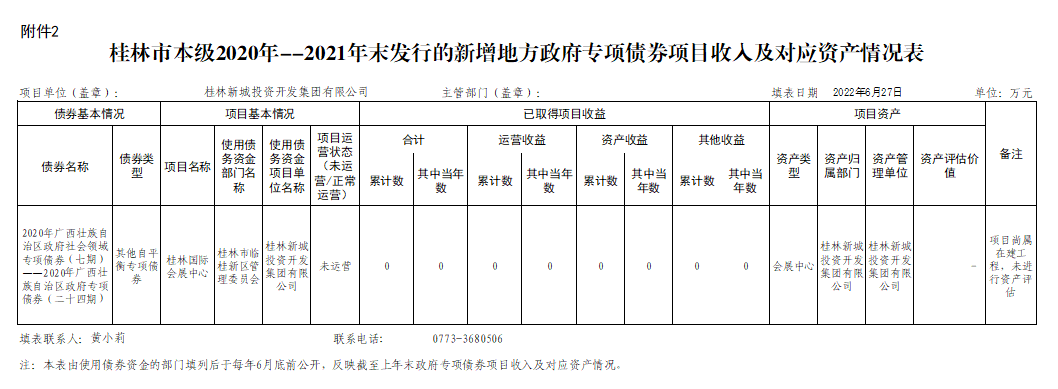 桂林新城投資開發(fā)集團有限公司關于2020年-2021年發(fā)行的新增政府債券使用和管理情況