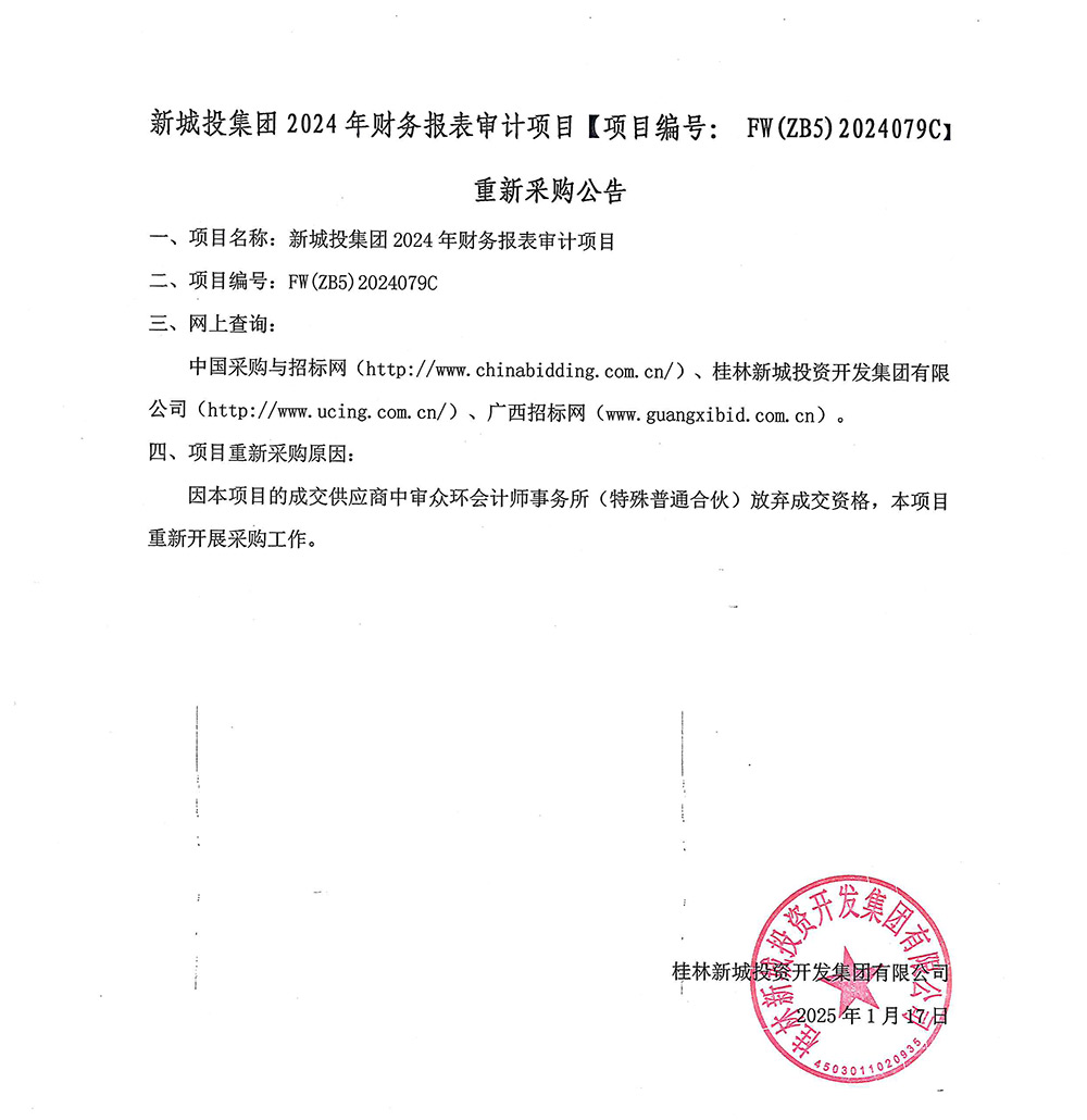 新城投集團(tuán)2024年財(cái)務(wù)報(bào)表審計(jì)項(xiàng)目【FW(ZB5)2024079C】重新采購(gòu)公告