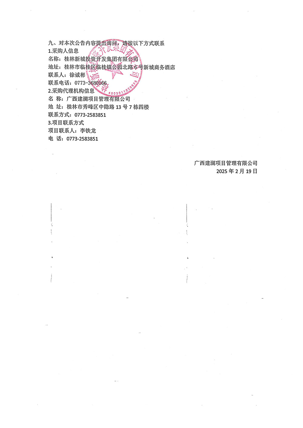 廣西建瀾項(xiàng)目管理有限公司關(guān)于2025年交易商協(xié)會(huì)債券承銷服務(wù)項(xiàng)目(項(xiàng)目編號(hào):GXJLGL2024-G3-1202)中標(biāo)結(jié)果公告