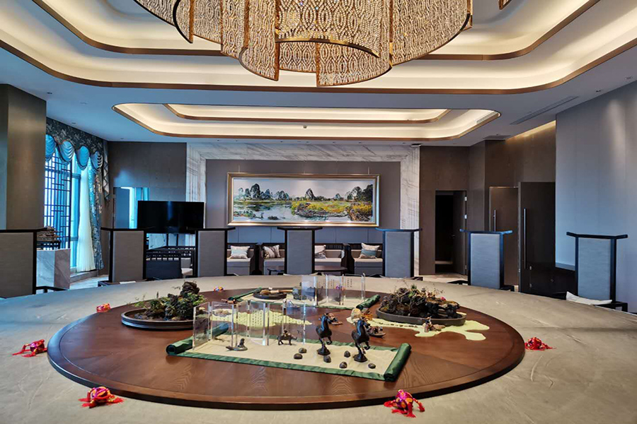 酒店以桂林山水藝術(shù)為主題,一千多幅著名畫家的珍品真跡展示,以桂林傳統(tǒng)的山水歷史為題材,讓客人移步換景,仿若身居山水藝術(shù)長(zhǎng)廊,在酒店內(nèi)就能感受到桂林山水之美。